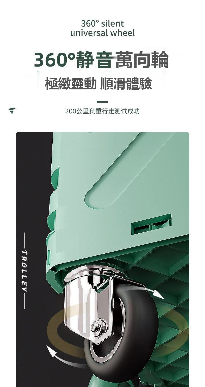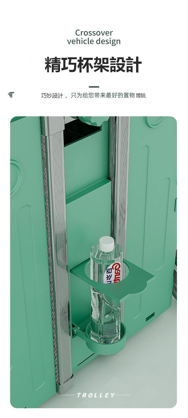 升級可平拉【四輪】大號75L晨曦綠+蓋板一體+送水杯架/