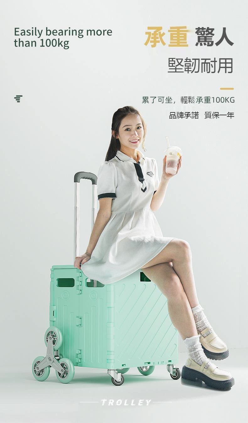升級可平拉【爬梯八輪】大號75L晨曦綠+蓋板一體+ 送水杯架/